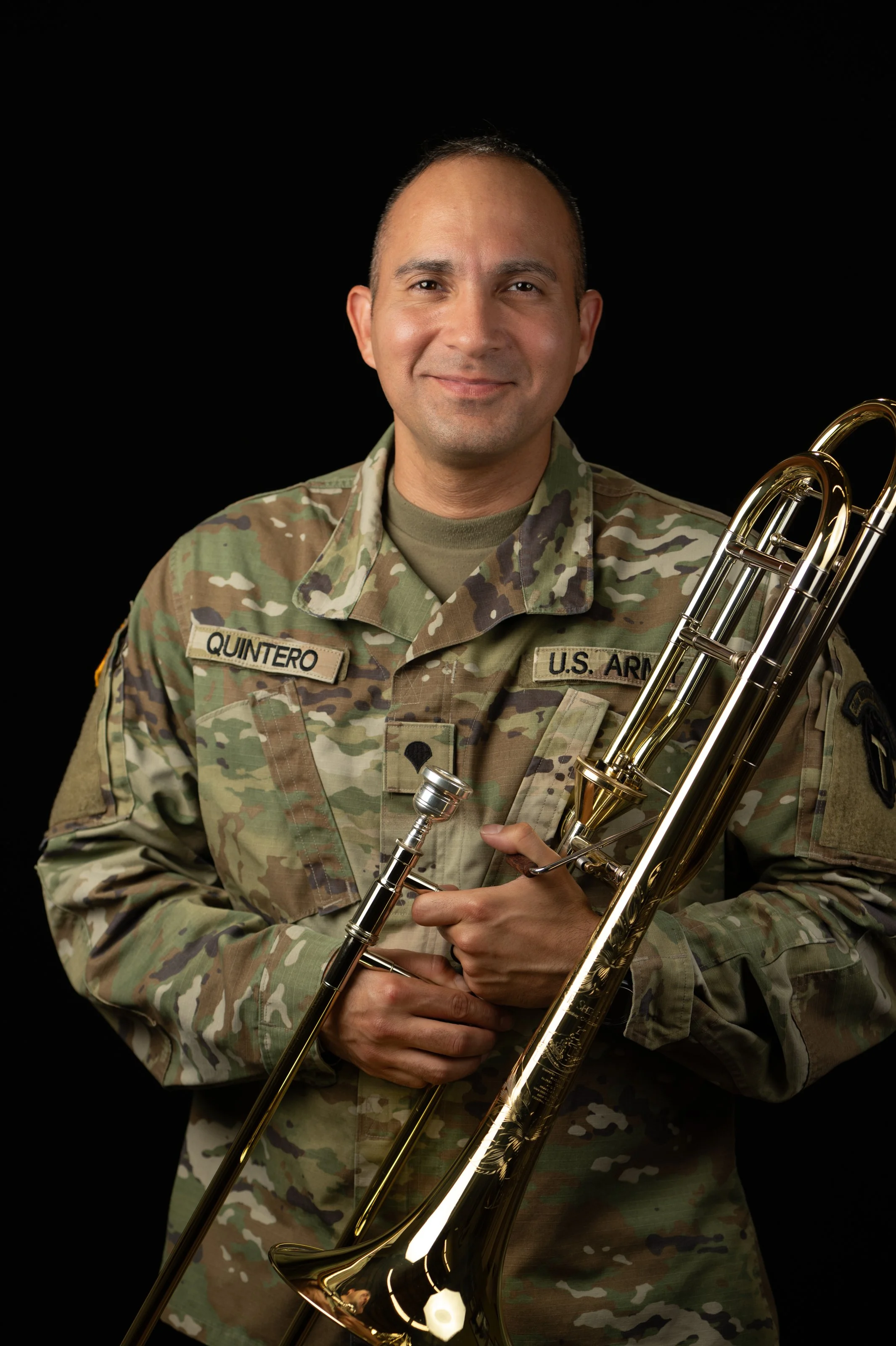 SPC Quintero enlisted in 2021 as a 42R Musician with the 36th Infantry Division Band in Austin, TX. He currently performs in the unit’s Concert Band, Rhythm & Boots, and Marching Band. His military education includes the Army School of Music.